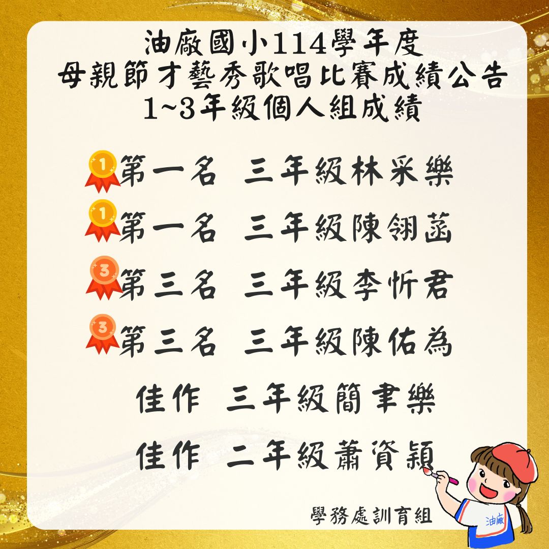 母親節才藝秀歌唱成績-1-3年級個人組